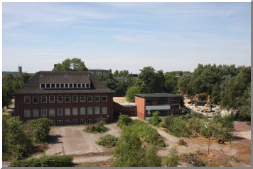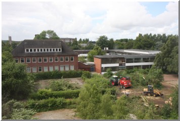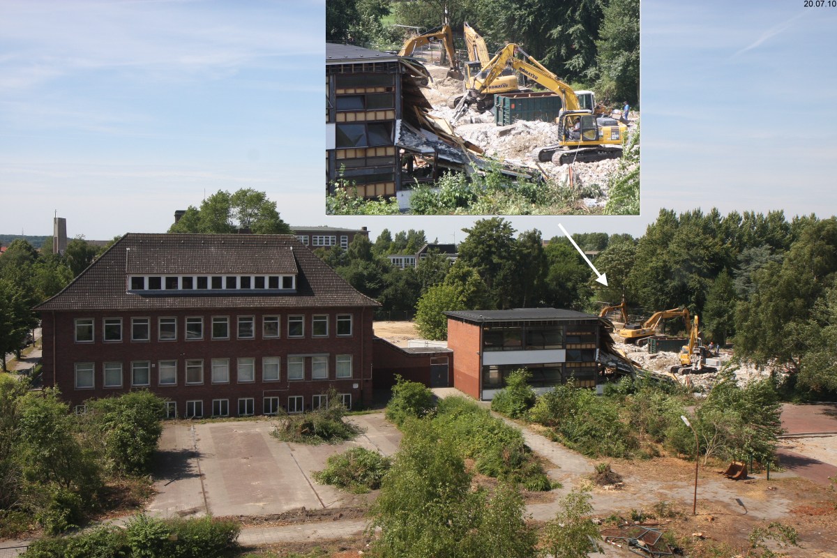 abgerissen. Der alte Klinkerbau aus den 1930'er Jahren links im Bild