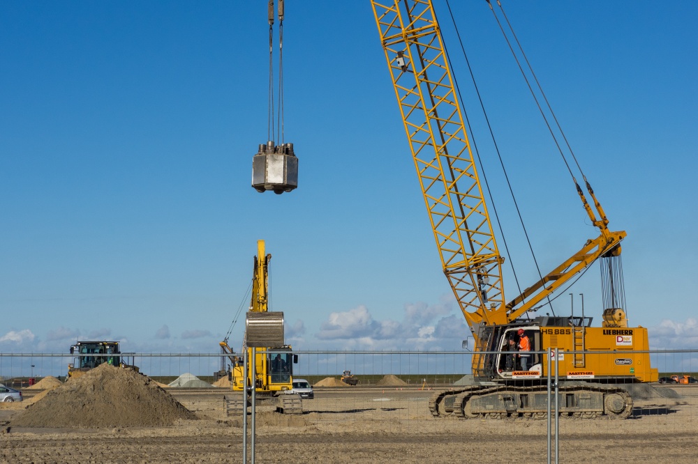 08.03.2016: Hier werden Arbeiten zur Bodenverdichtung mit schweren Gewichten durchgeführt.