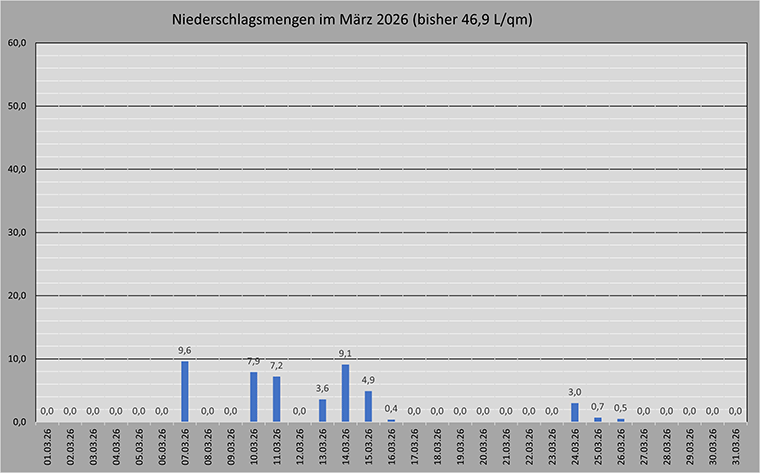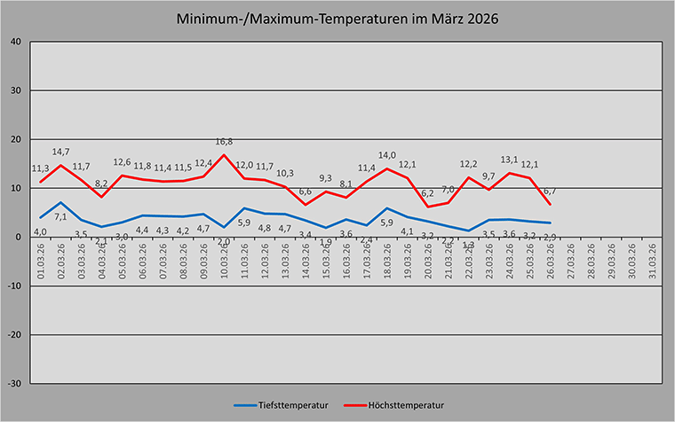 Übersicht Minimum-/Maximum-Temperaturen im März 2026 für Cuxhaven