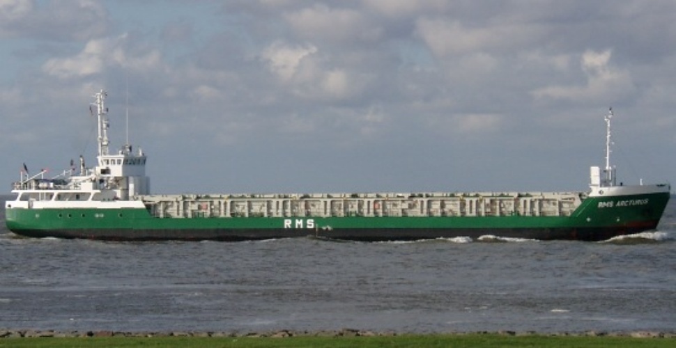Frachtschiff elbaufwärts vor Cuxhaven-Groden am 13.05.2003