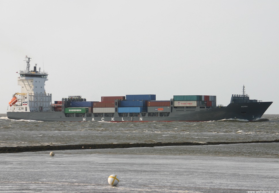 Containerschiff elbaufwärts am 07.06.2005 vor Cuxhaven-Altenbruch |
