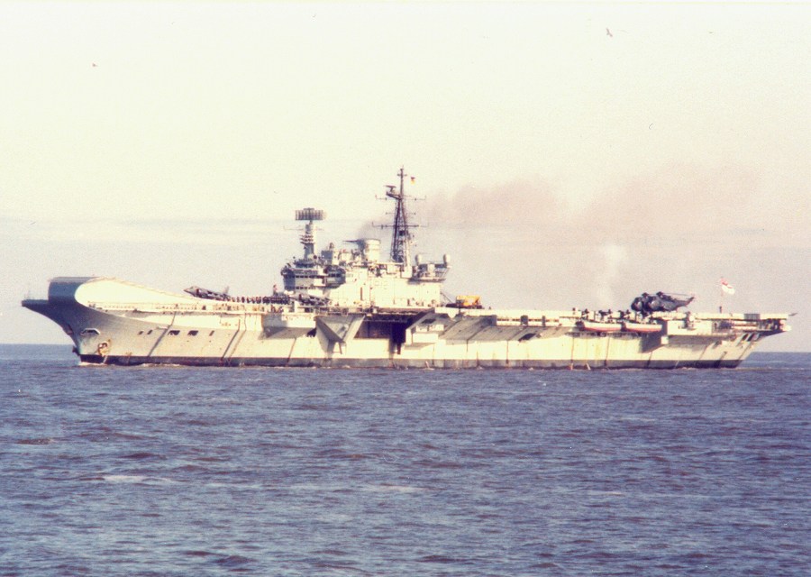 englischer Flugzeugträger elbabwärts vor Cuxhaven 1983