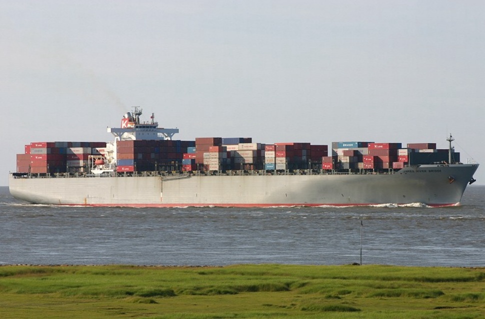 Containerschiff einkommend vor Cuxhaven-Groden am 08.06.2006