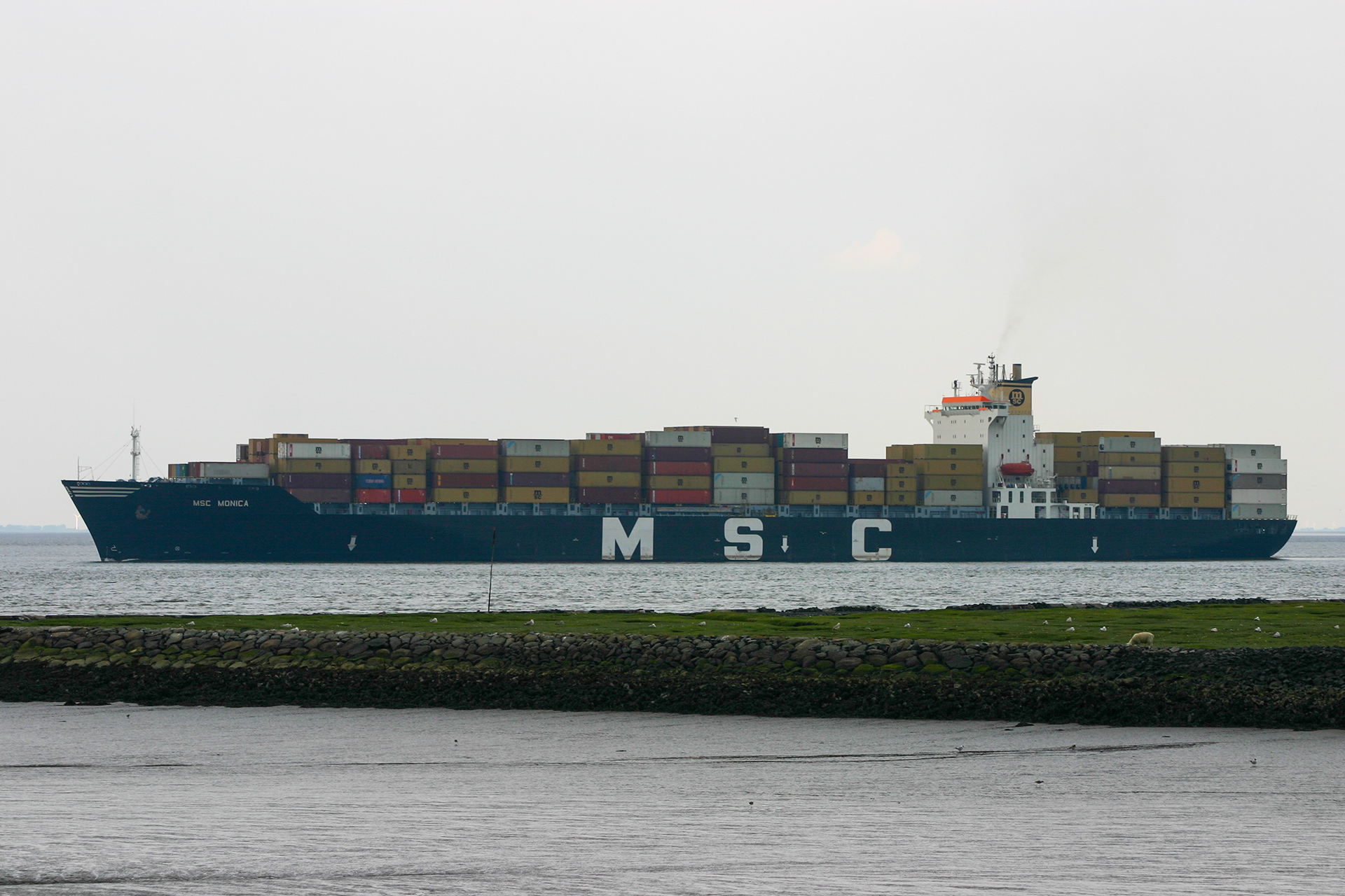 Containerschiff am 06.07.2005 seewärts fahrend vor Cuxhaven-Groden