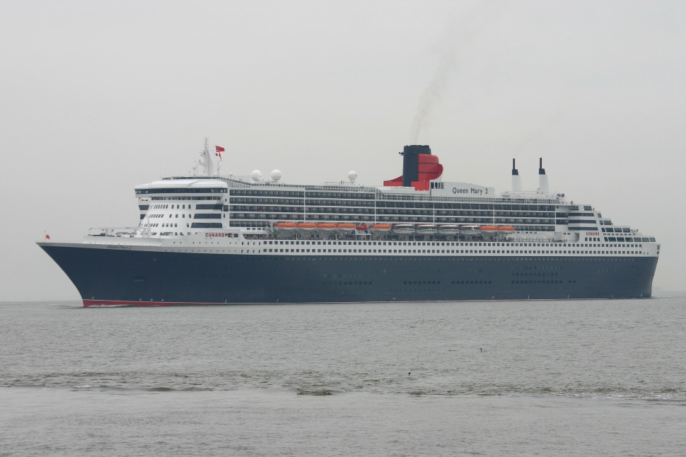 Auf der Rückfahrt aus dem Hamburger Hafen passiert die QM 2 am 20.07.2004 Cuxhaven-Altenbruch