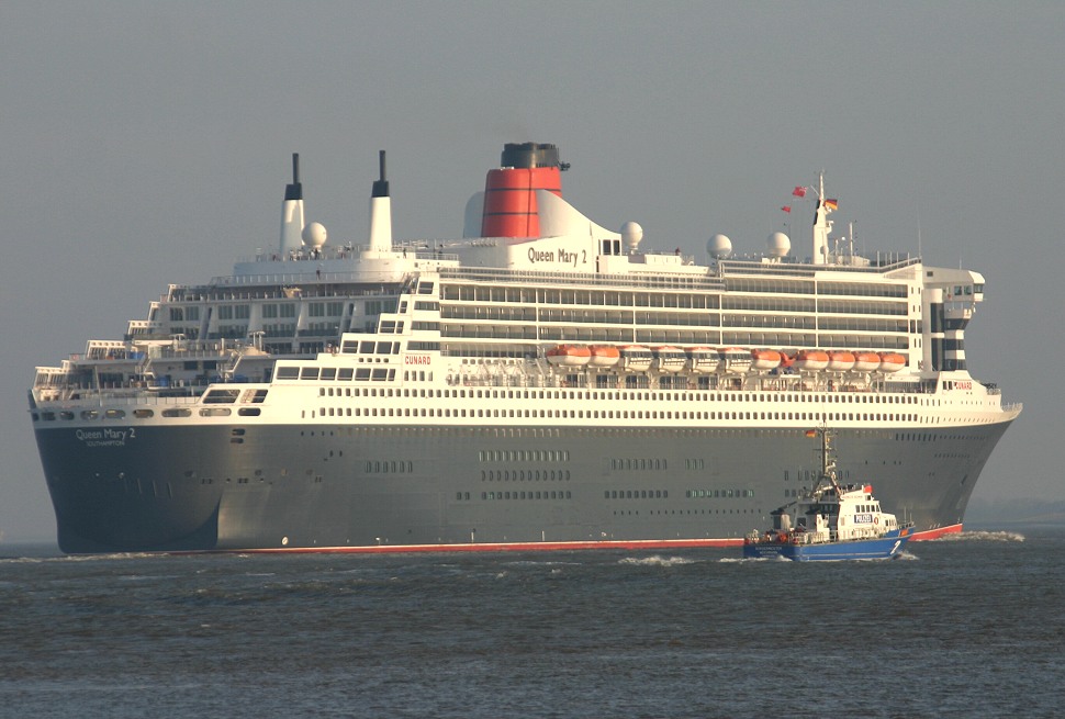 Das Kreuzfahrtschiff beim Einschwenken in den Altenbrucher Bogen