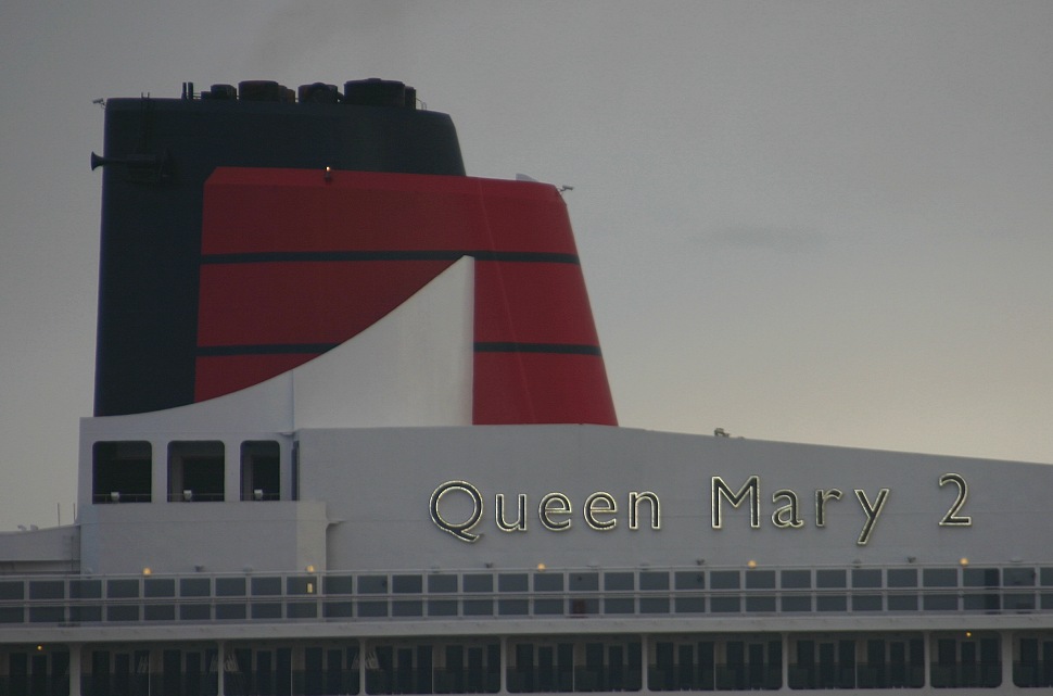 Am Schornstein der QM 2 wurde das tief dröhnende Schiffshorn der alten "Queen Mary" aus dem Jahr 1934 angebracht.