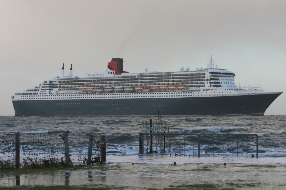 Die QM 2 in Höhe des Grodener Leuchtturms