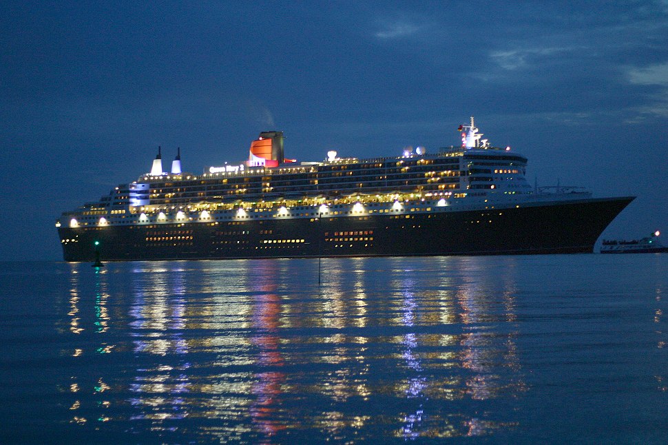 Die "Queen Mary 2" zwischen Cuxhaven-Groden und Altenbruch