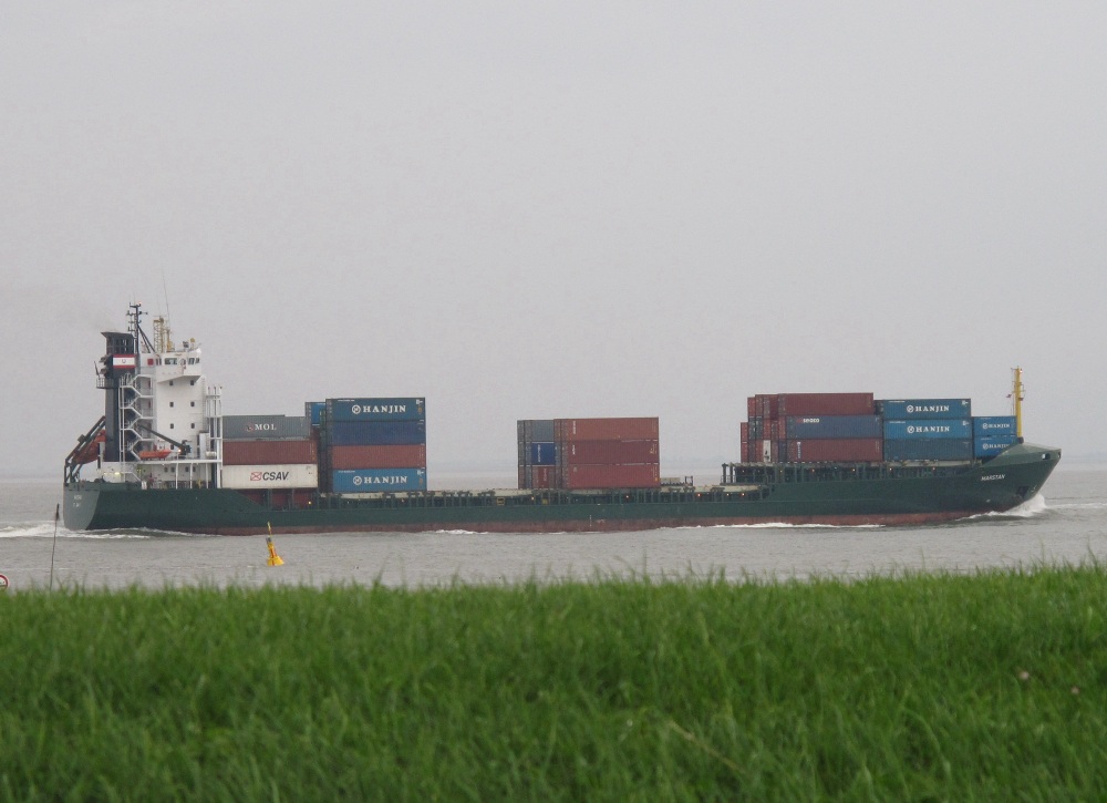 Frachtschiff elbaufwärts vor Cuxhaven-Altenbruch am 03.10.2012