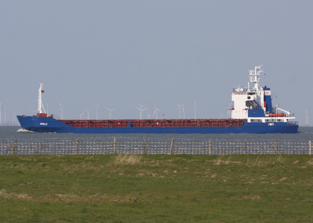 Frachtschiff elbabwärts vor Cuxhaven-Altenbruch am 19.04.2015