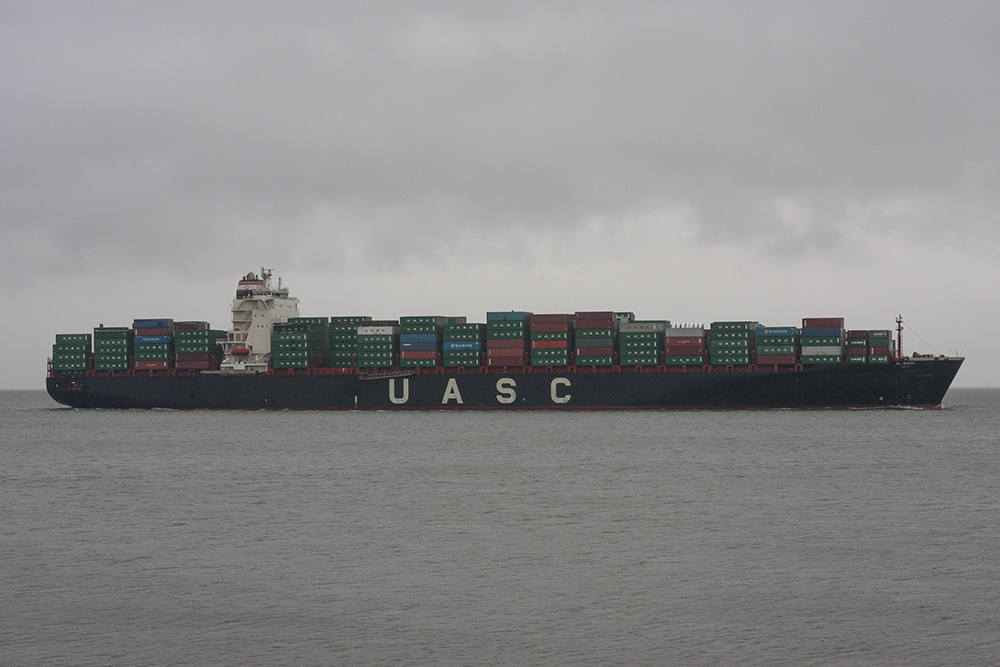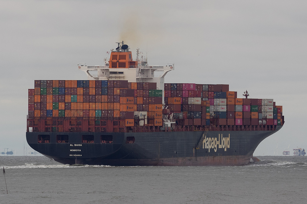 Containerschiff elbaufwärts vor Cuxhaven-Groden am 07.11.2009