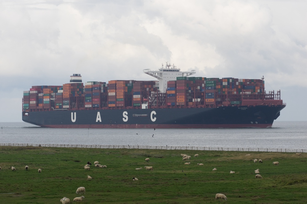 Containerschiff elbauufwärts vor Cuxhaven-Altenbruch am 194.09.2017
