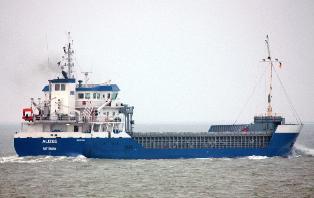 Frachtschiff elbaufwärts vor Cuxhaven-Altenbruch am 29.11.2014
