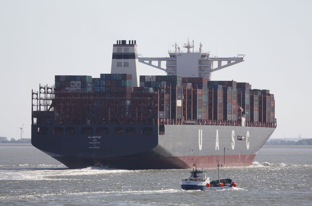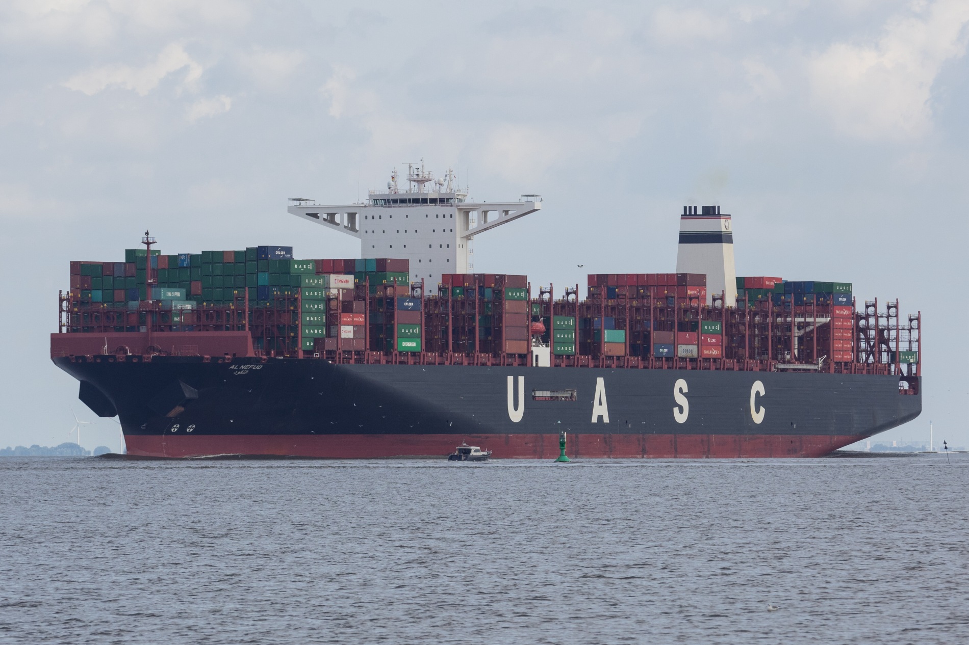 Containerschiff elbabwärts vor Cuxhaven-Altenbruch am 03.09.2016