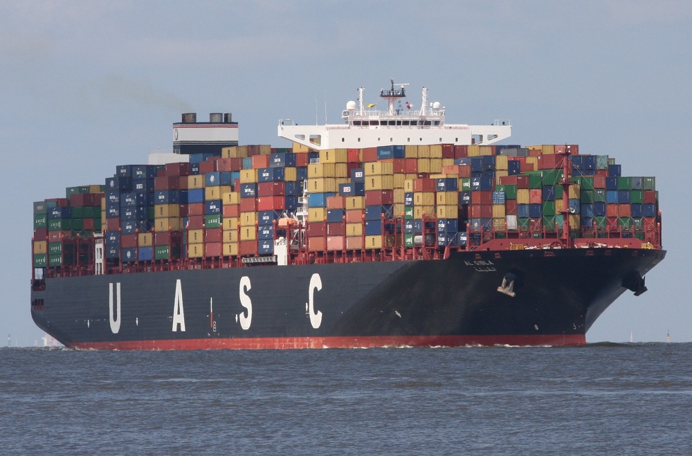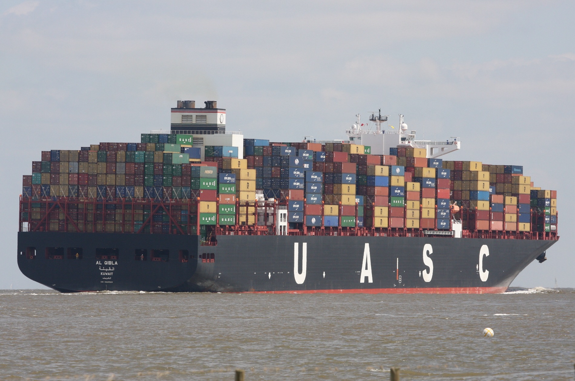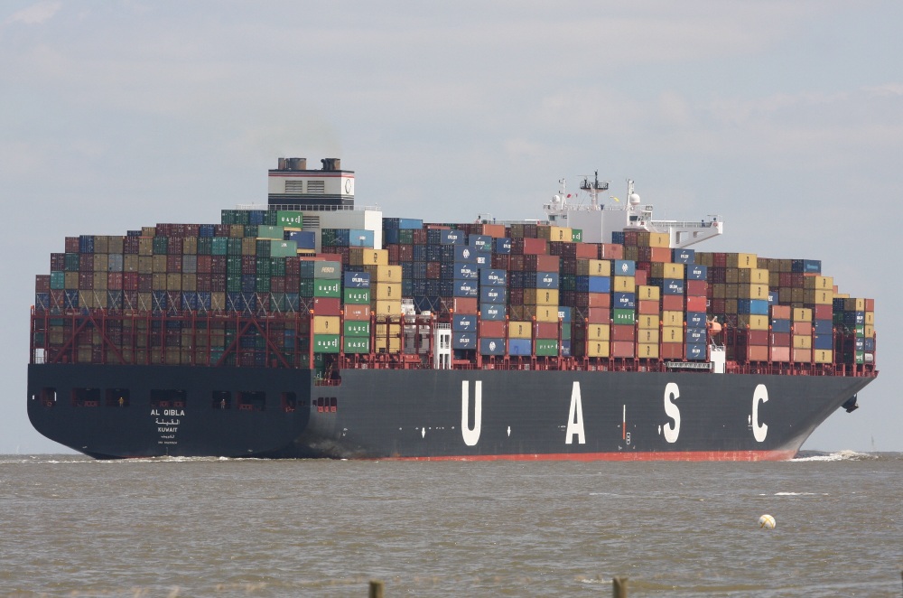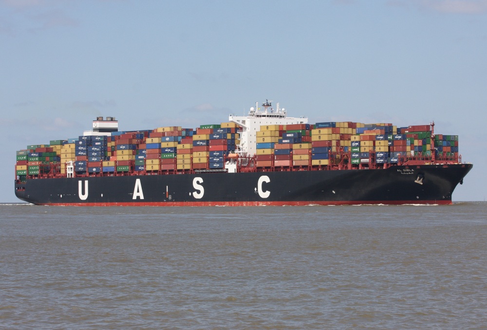 Containerschiff elbaufwärts vor Cuxhaven-Altenbruch am 29.05.2014