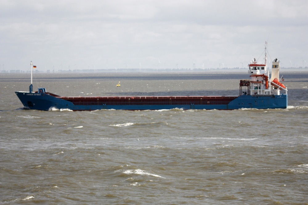 Frachtschiff elbabwärts vor Cuxhaven im Spätsommer 2016