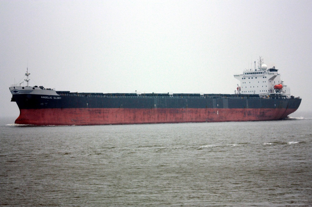 Massengutfrachter elbabwärts vor Cuxhaven-Altenbruch am 25.04.2015