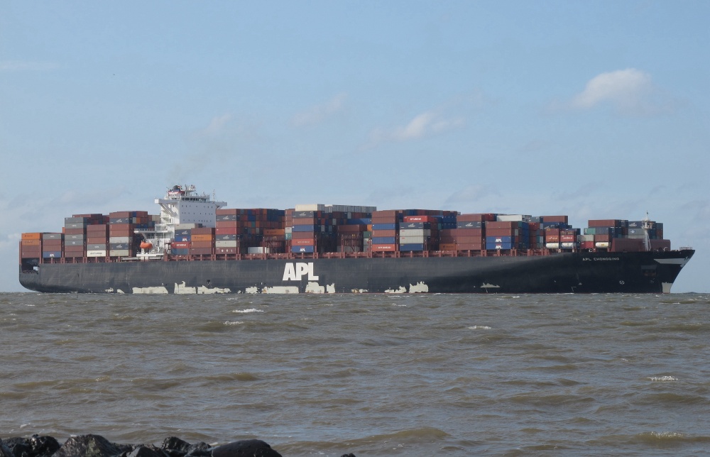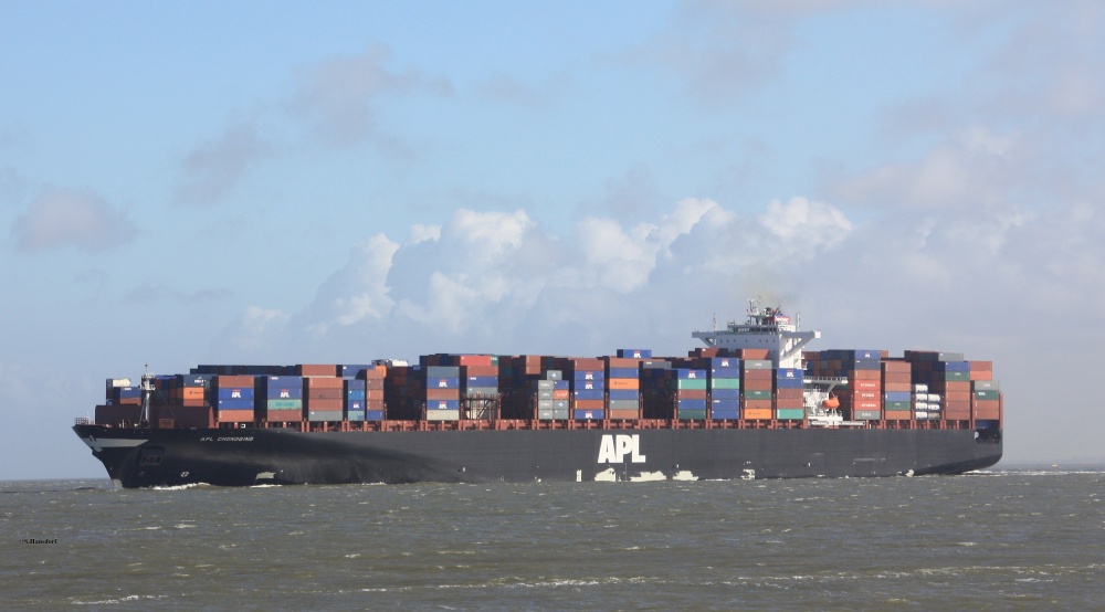 Containerschiff elbabwärts vor Cuxhaven im März 2012 (Foto unten: Stefanie Hausdorf)