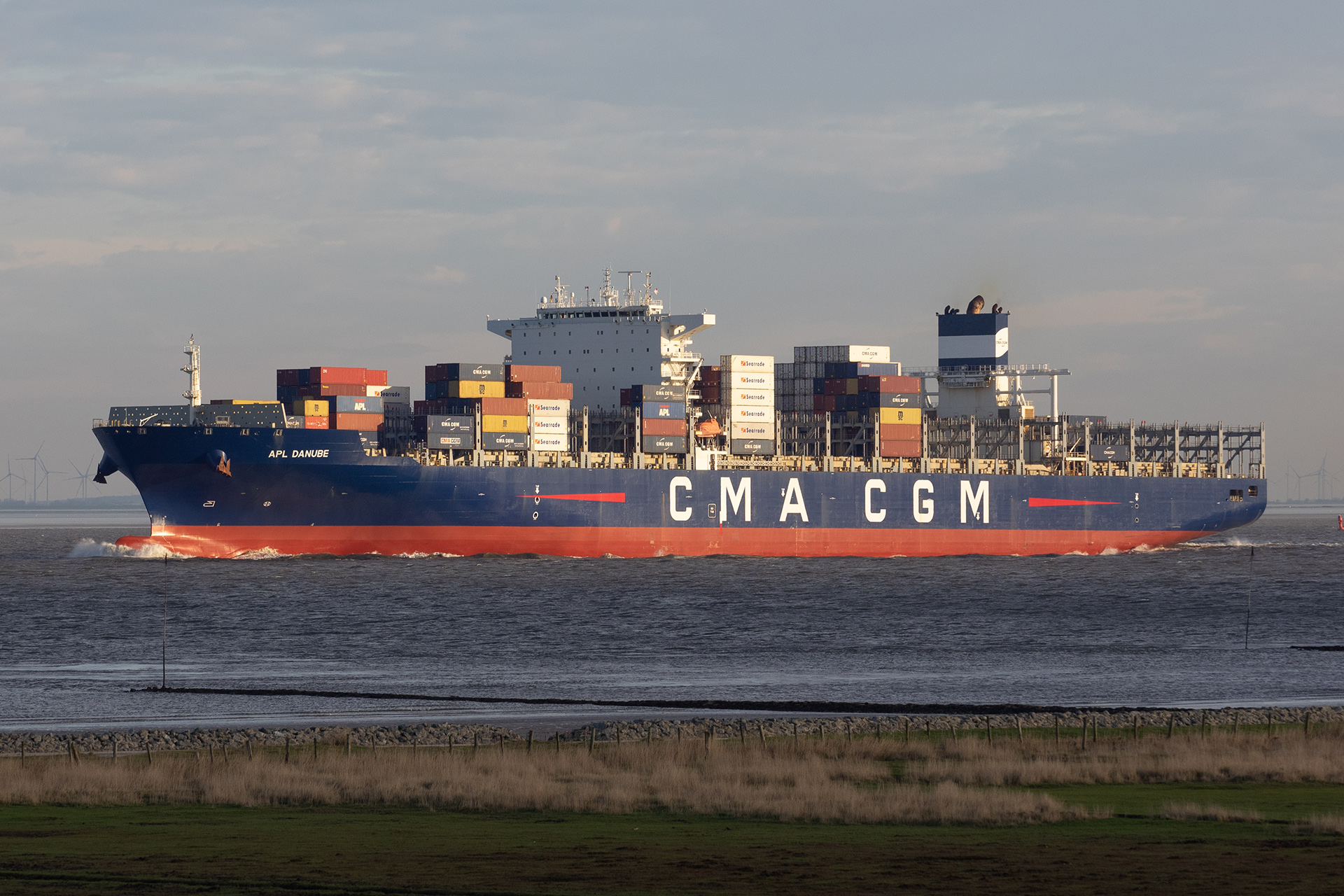 Containerschiff elbabwärts vor Cuxhaven-Altenbruch am 30.12.2019