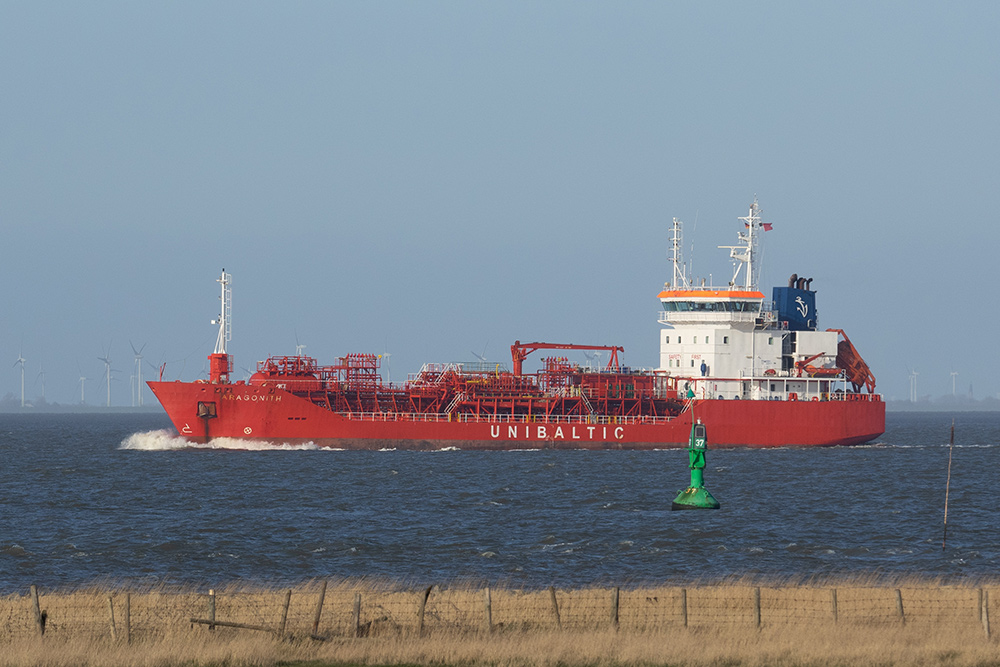 Tanker elbabwärts vor Cuxhaven-Altenbruch am 09.04.2020