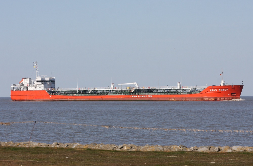 Tanker elbaufwärts zwischen Altenbruch und Otterndorf am 06.04.2015