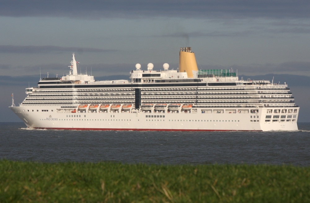 Passagierschiff elbabwärts vor Cuxhaven-Groden am 13.12.2009