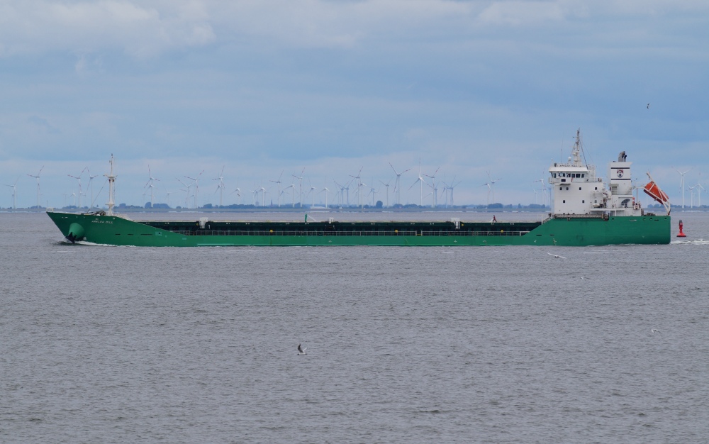 Frachtschiff elbabwärts vor Cuxhaven am 14.07.2018