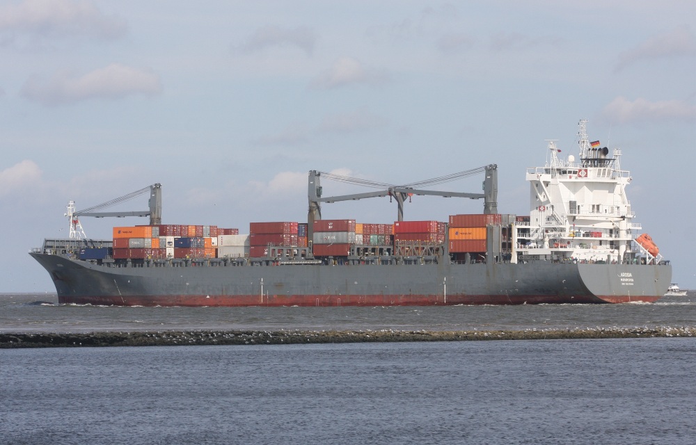 Frachtschiff elbabwärts vor Cuxhaven am 28.07.2013