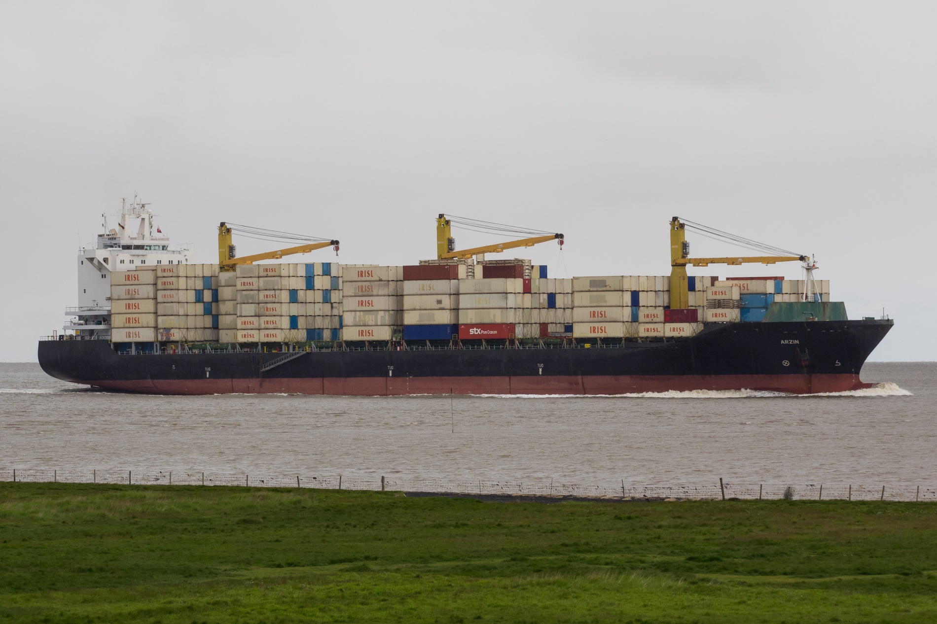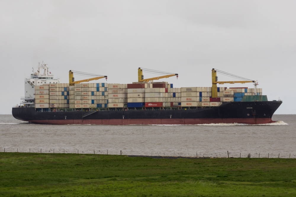 Containerschiff elbaufwärts vor Cuxhaven-Altenbruch am 17.05.2016