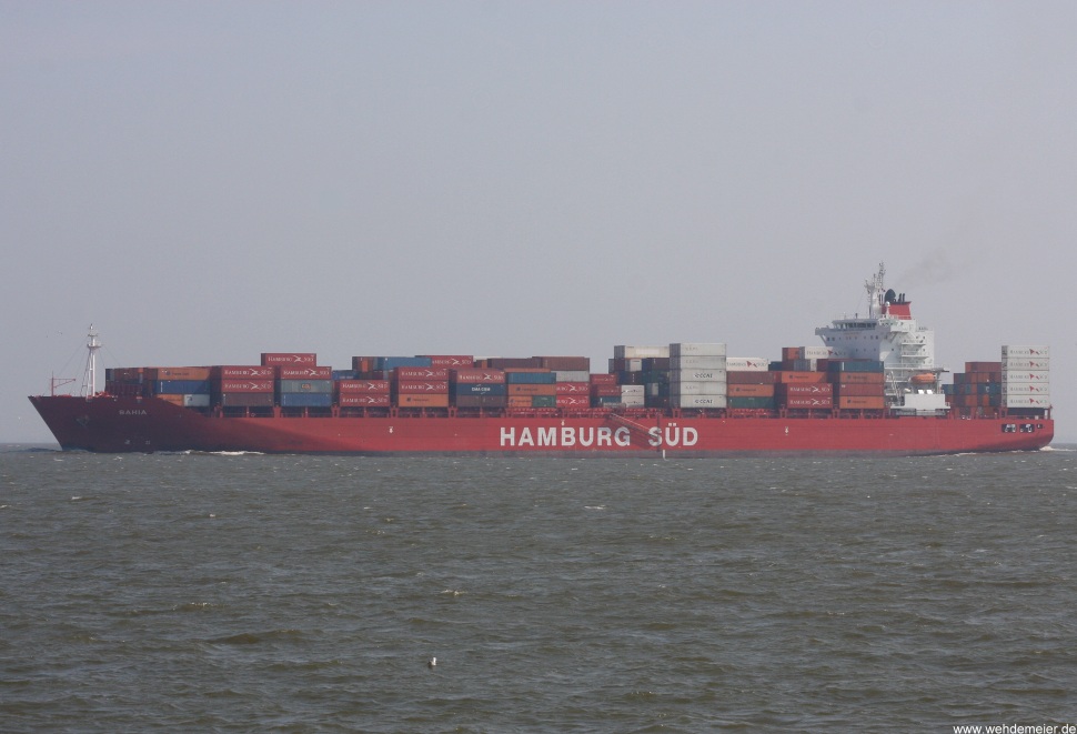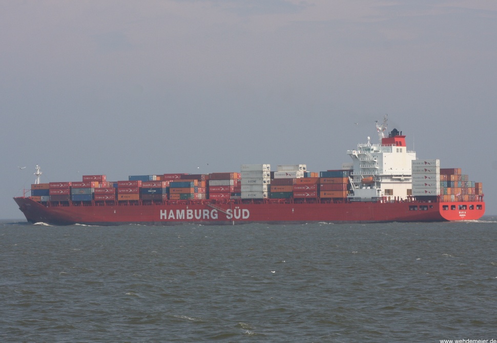 Containerschiff elbabwärts vor Cuxhaven-Altenbruch am 12.07.2010