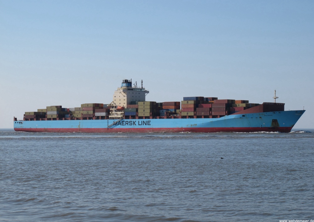 Containerschiff elbaufwärts in Höhe Glameyer Stack am 24.04.2011