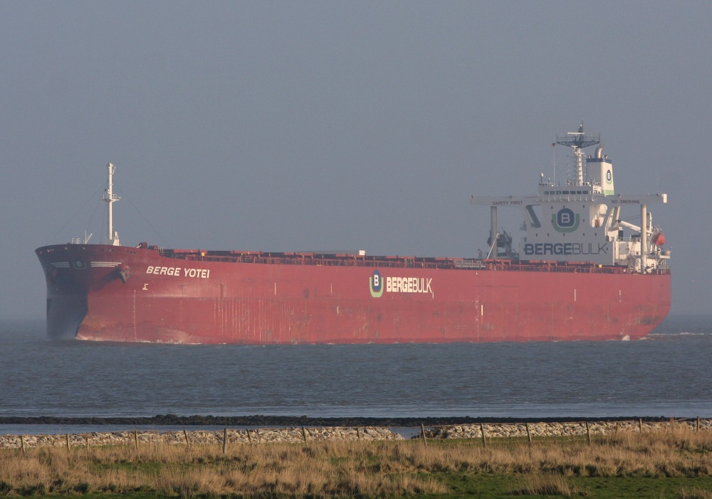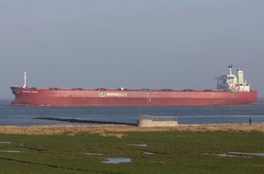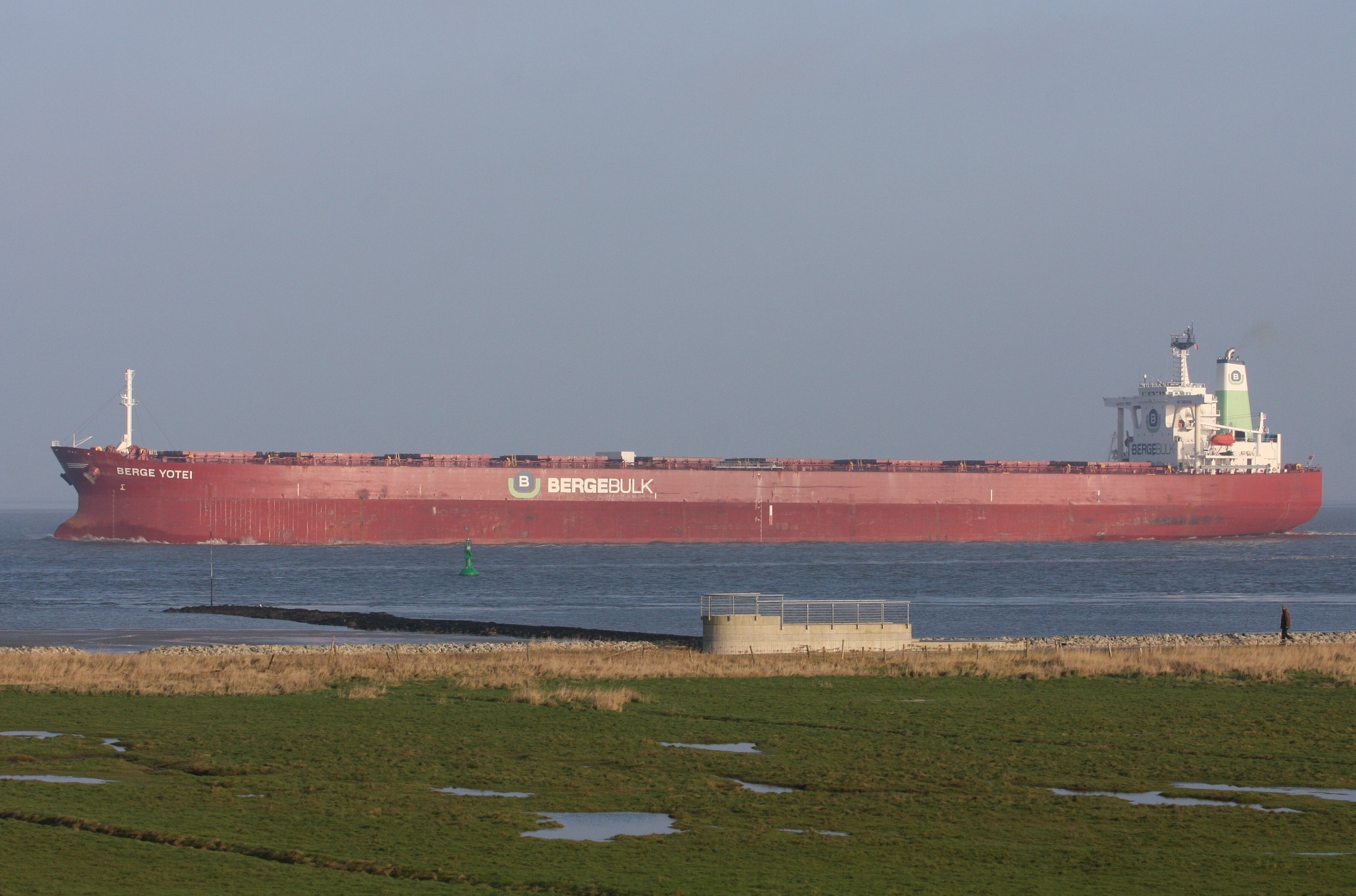 Massengutfrachter elbabwärts vor Cuxhaven-Altenbruch am 14.12.2014