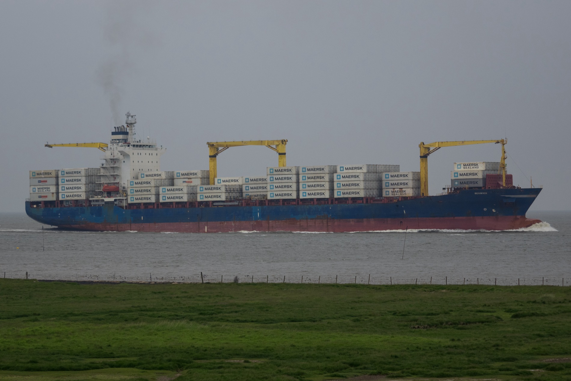 Frachtschiff elbaufwärts vor Cuxhaven-Altenbruch am 22.05.2016