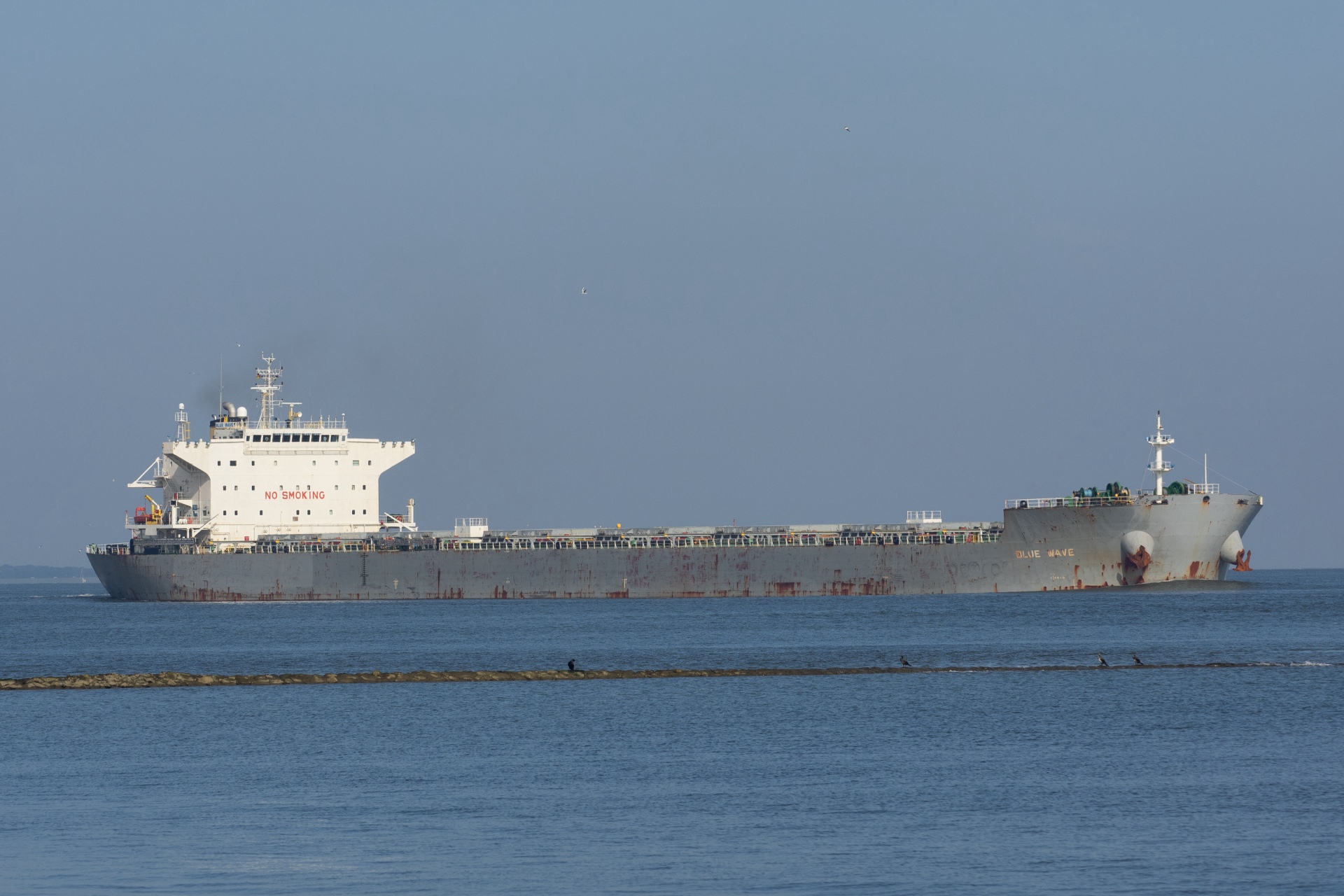 Massengutfrachter elbaufwärts in Höhe Glameyer Stack am 31.07.2019
