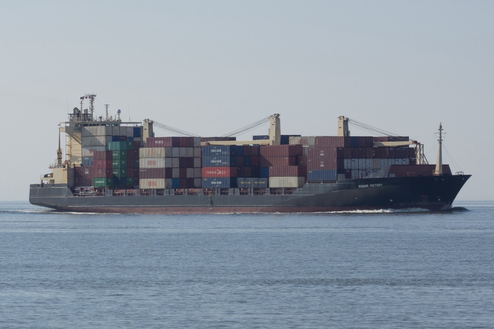 Containerschiff elbaufwärts vor Cuxhaven-Altenbruch am 07.06.2018