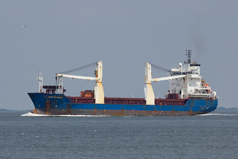 Frachtschiff elbabwärts vor Cuxhaven-Altenbruch am 18.07.2020