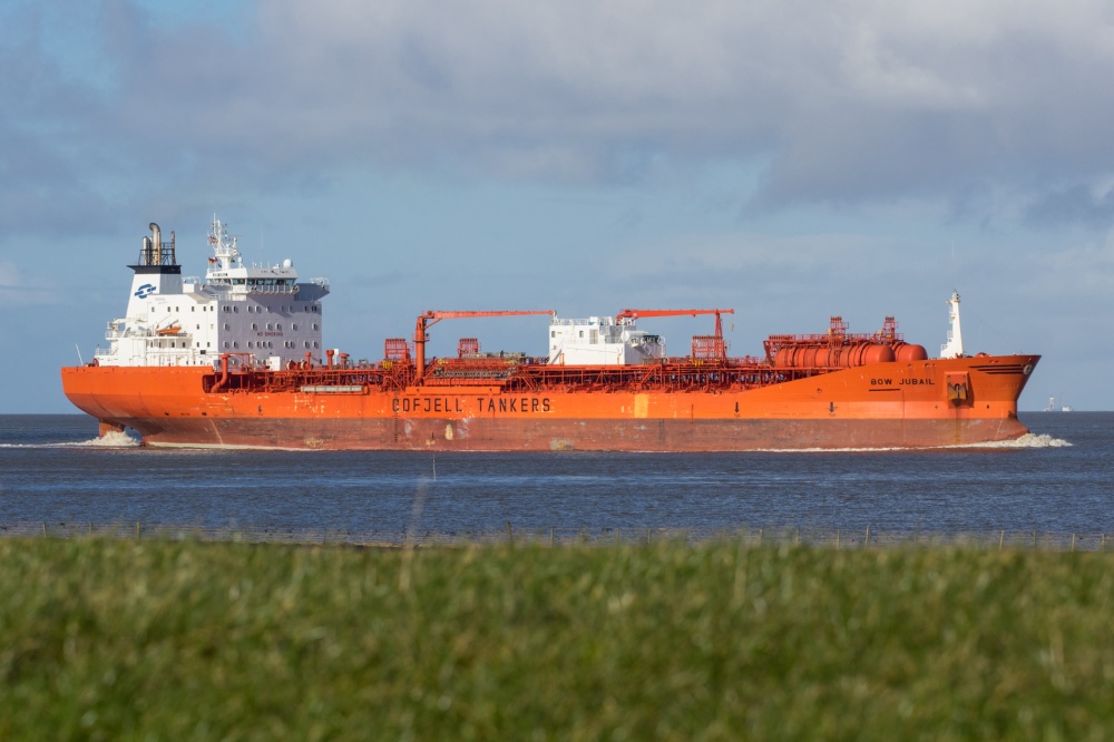 Tanker elbaufwärts vor Cuxhaven-Altenbruch am 24.02.2016