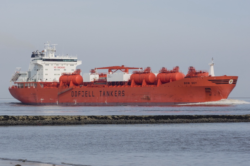 Tanker elbaufwärts in Höhe Glameyer Stack am 23.07.2016