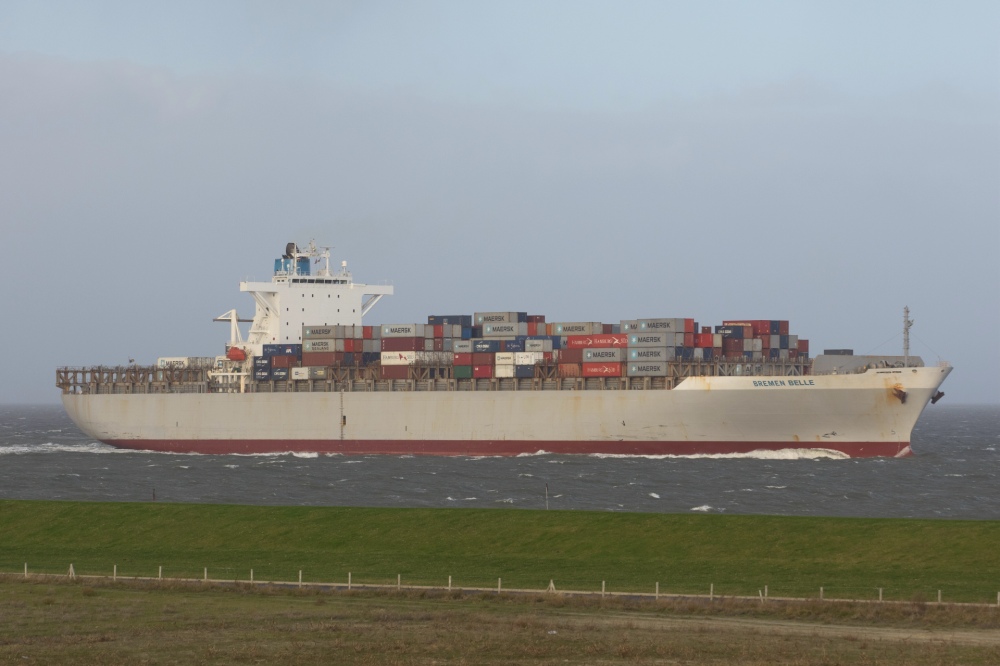 Containerschiff elbaufwärts vor Cuxhaven-Altenbruch am 01.01.2019