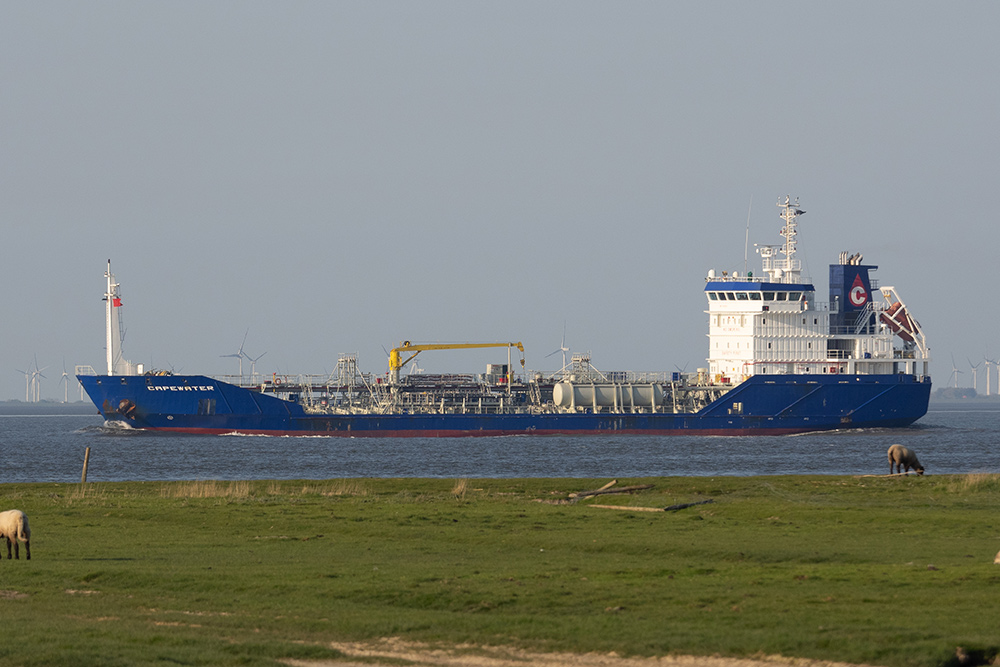 Tanker elbabwärts vor Cuxhaven-Altenbruch am 09.05.2020