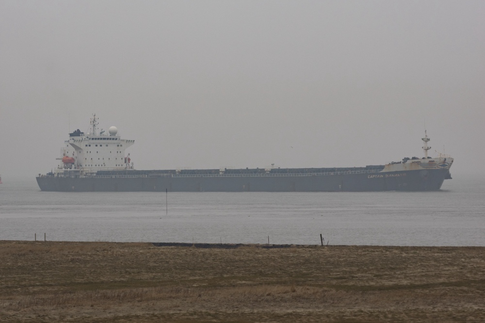 Massengutfrachter elbaufwärts vor Cuxhaven-Altenbruch am 25.03.2018