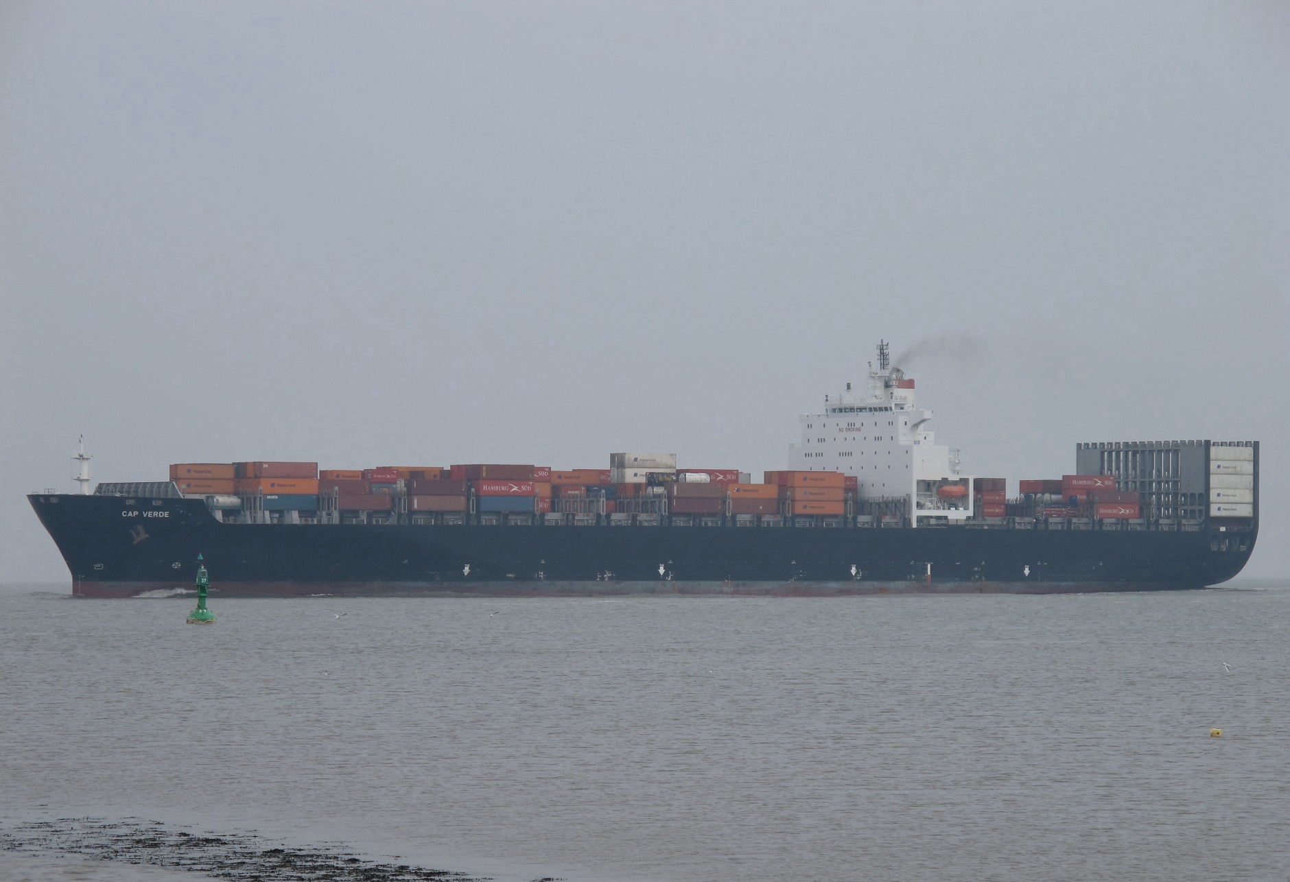 Containerschiff elbabwärts vor Cuxhaven-Altenbruch am 17.03.2012