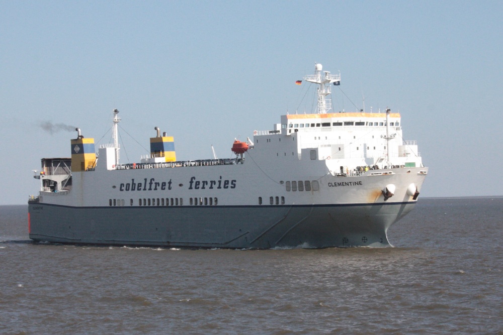 Frachtschiff elbabwärts vor Cuxhaven am 24.08.2013