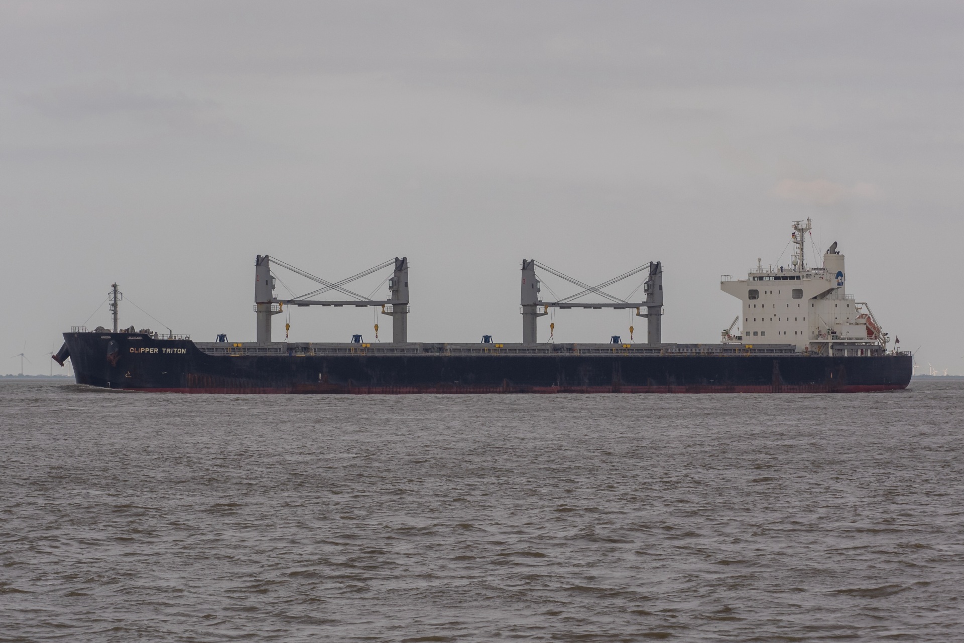 Frachtschiff elbabwärts vor Cuxhaven-Altenbruch am 03.05.2017