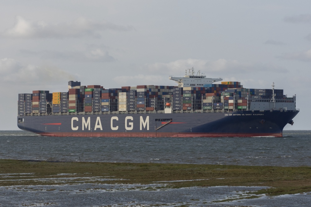 Containerschiff elbaufwärts in Höhe Glameyer Stack am 30.08.2018