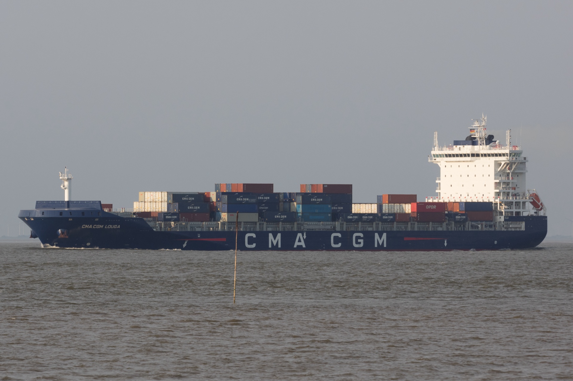 Containerschiff elbabwärts vor Cuxhaven-Altenbruch am 05.06.2019