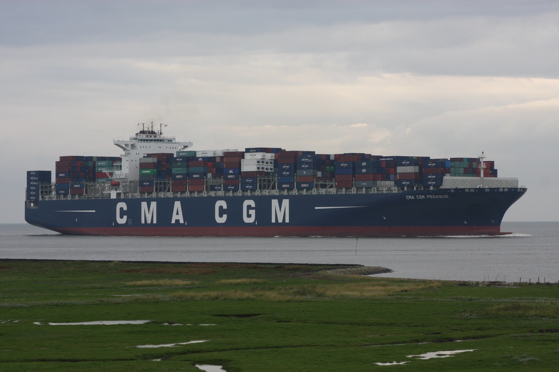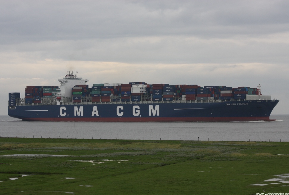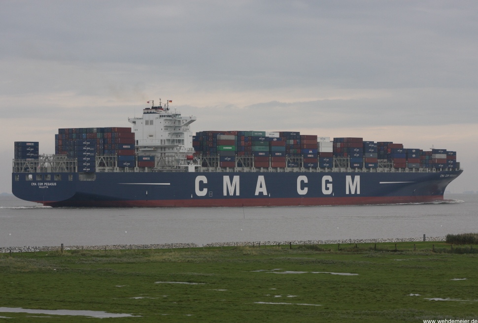 Containerschiff elbaufwärts vor Cuxhaven-Altenbruch am 19.09.2010