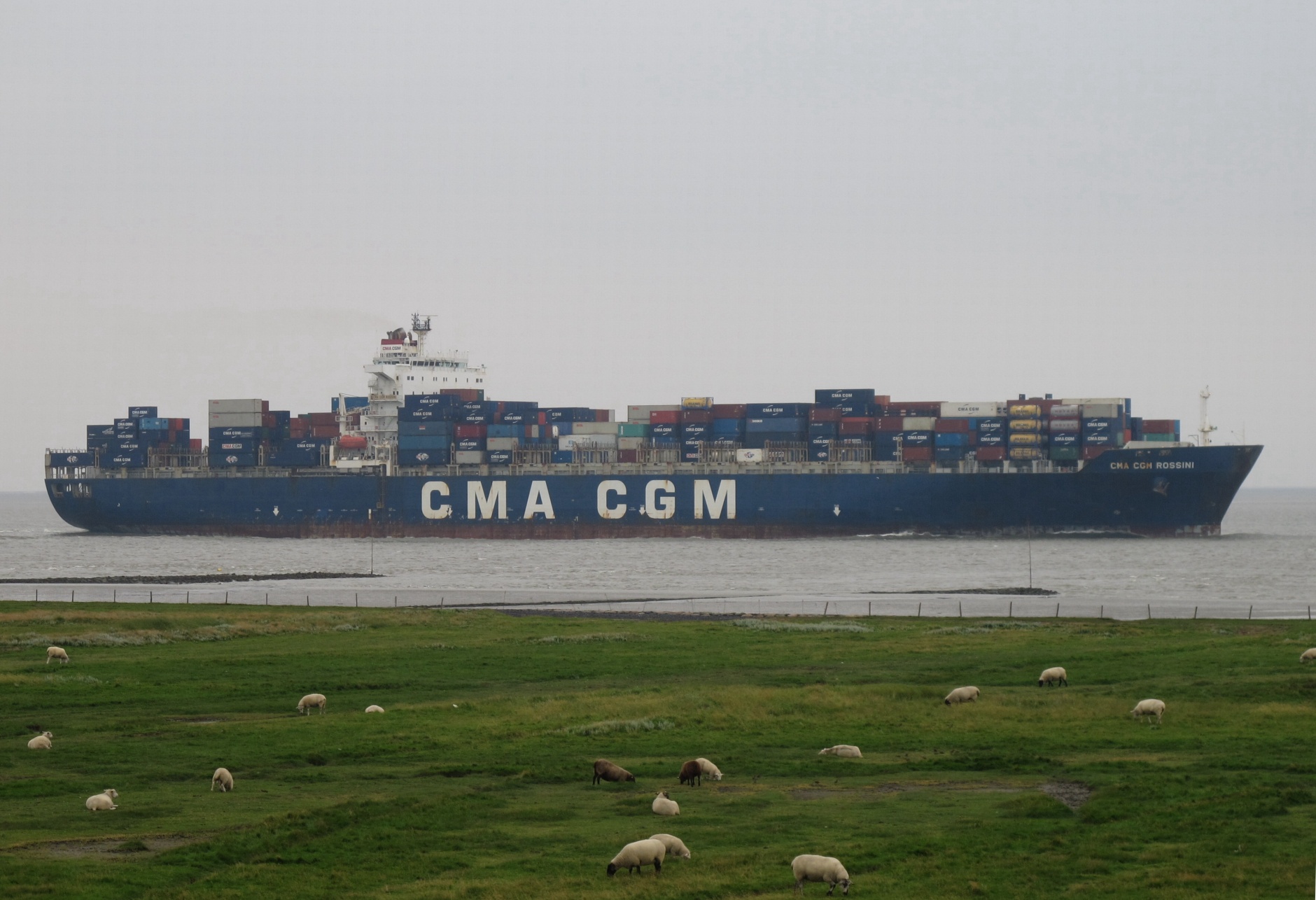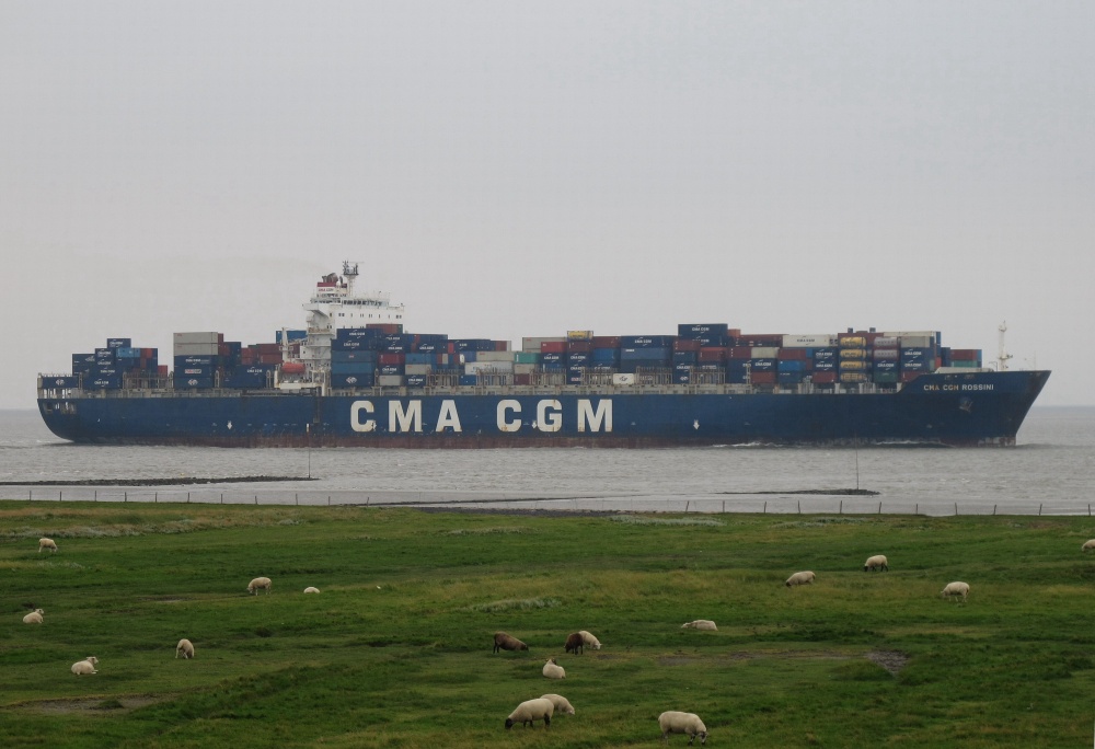 Containerschiff elbaufwärts vor Cuxhaven-Altenbruch am 13.07.2011