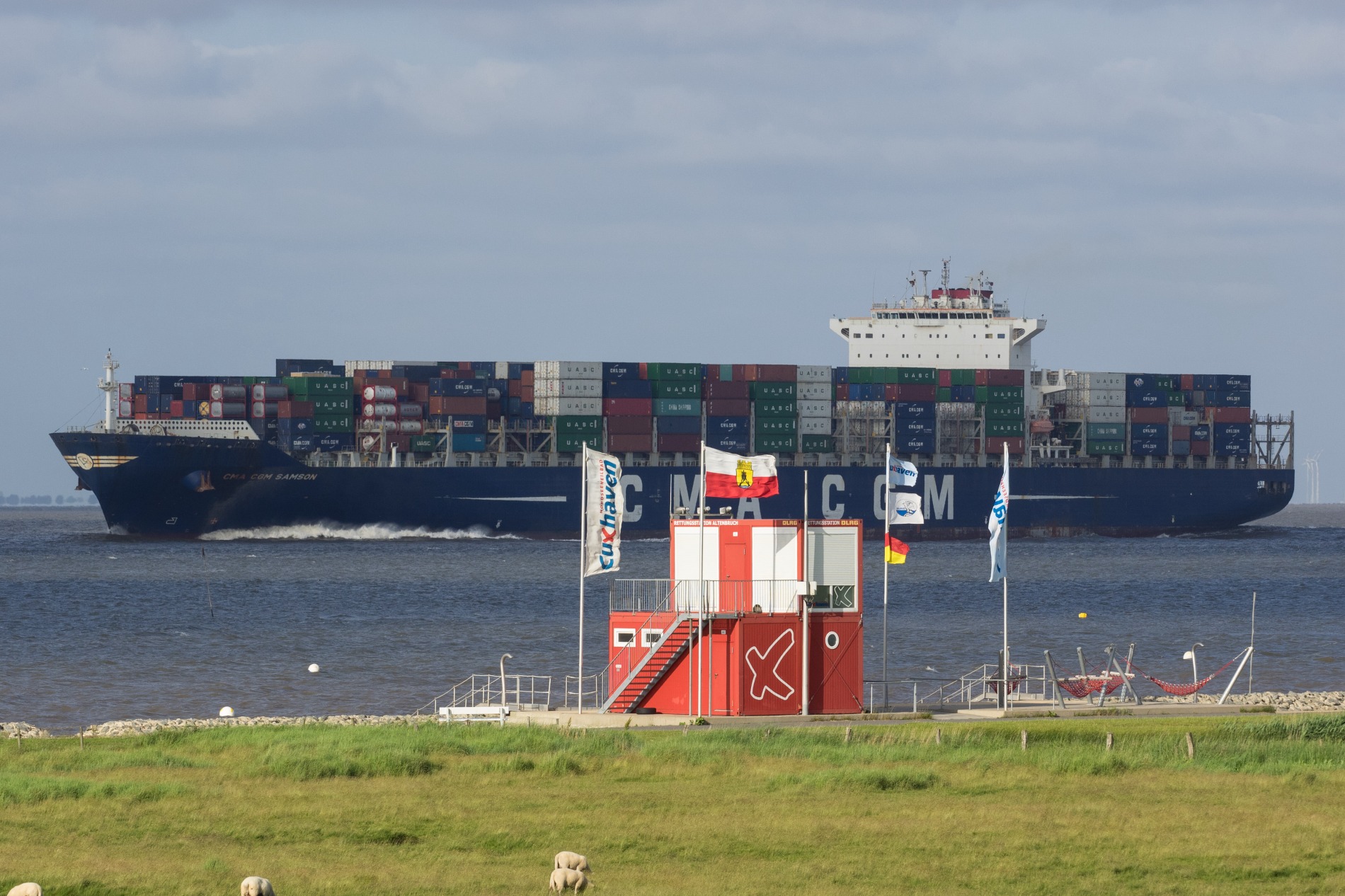 Containerschiff elbabwärts vor Cuxhaven-Altenbruch am 09.06.2016